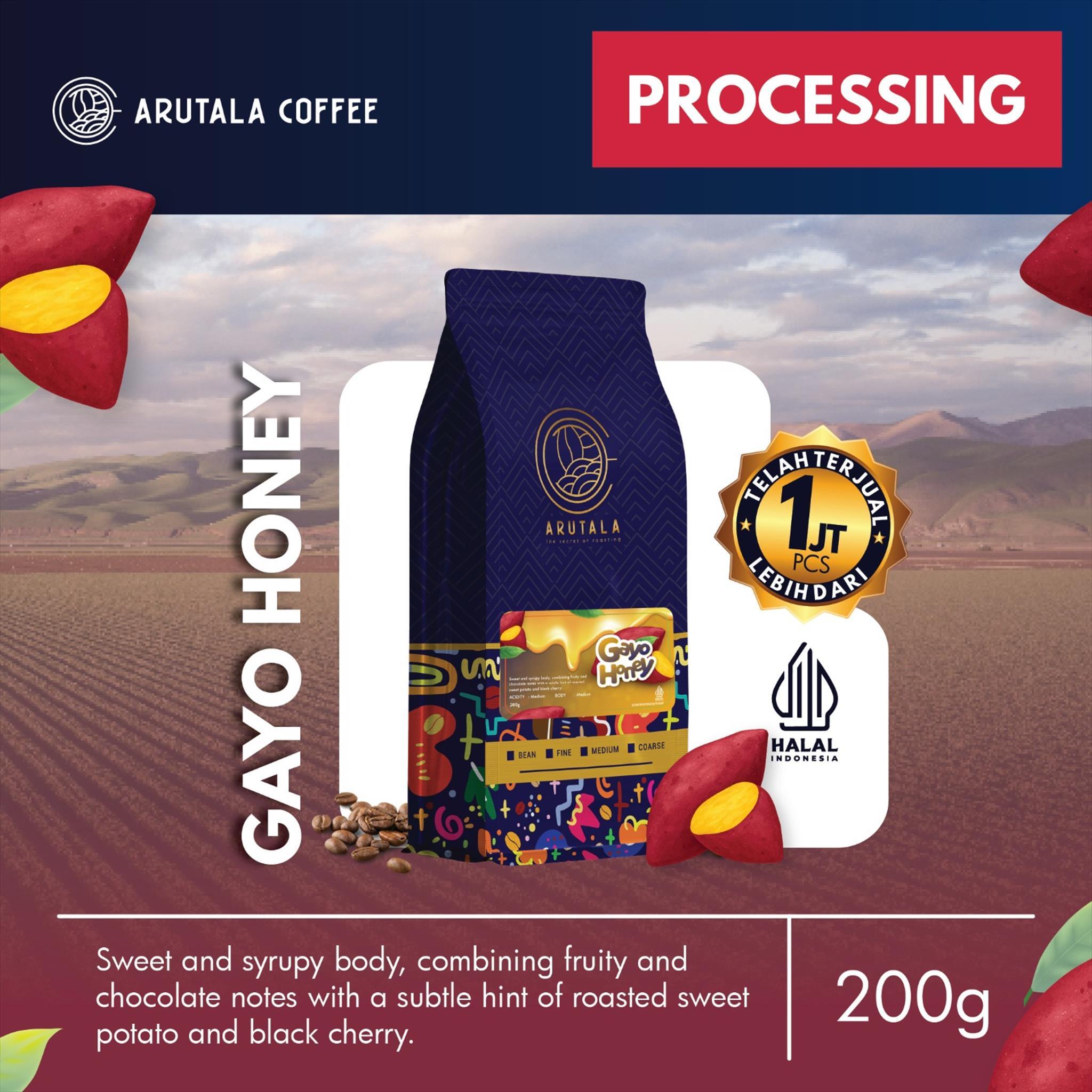 KENAPA ARUTALA COFFEE Dengan memiliki roastery sendiri, proses Roasting adalah sebuah jawaban besar kenapa Arutala itu berbeda. Kredibilitas hingga pertimbangan yang begitu detail, membawa Arutala naik ke level yang lebih tinggi. Layaknya seorang eksekutif chef, dengan bahan baku yang sama, tetapi dapat menghasilkan hidangan yang berbeda. DESKRIPSI PRODUK Arabika Gayo Honey Kemasan: Exclusive Zipper Flat Bottom Pouch Kopi: 100% Arabika Asal: Gayo, Aceh Tengah, Aceh Netto: 200 Gram No. PIRT: ID36110003625070523 100% Halal MUI