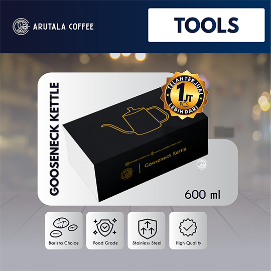 ARUTALA GOOSENECK KETTLE Gooseneck Kettle ini terbuat dari stainless steel dengan sentuhan lapisan warna hitam di bagian luar membuatnya terlihat sangat elegan dan berkelas. Cocok, pas di tangan sangat ergonomis, lekukan design pas ditangan, tidak terlalu berat sehingga tidak membuat tangan cepet lelah. Dengan leher yg halus seperti angsa, membuat air yg keluar dari ujung teko sangat halus dan konstan, mudah di kontrol ketepatan dan kecepatan seduh. Dapat digunakan untuk menuangkan air panas untuk menyeduh V60, Wave, Chemex, Aeropress, French Press, dsb.