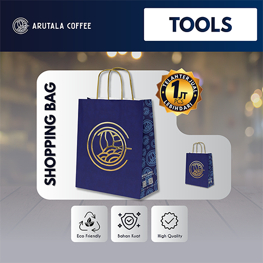 ARUTALA SHOPPING BAG Shopping bag ini terbuat dari bahan ramah lingkungan (eco-friendly) dengan bahan yang berkualitas, dan tidak mudah robek. Terdapat tali/ handle agar dapat ditenteng serta cocok digunakan untuk menyimpan belanjaan, souvenir, kado, makanan, snack, dan lainnya.