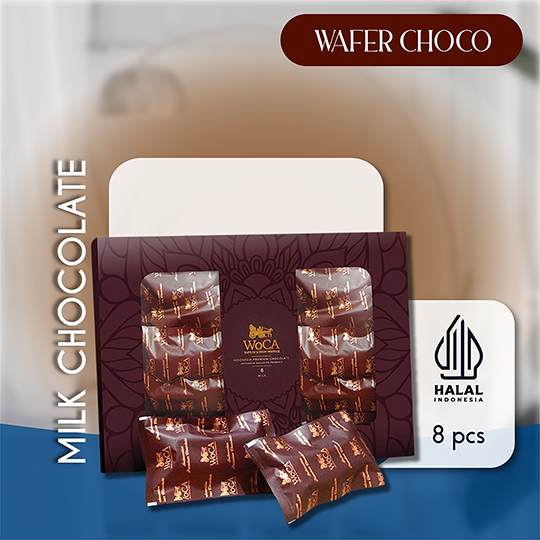 WOCA PREMIUM CHOCOLATE WITH MILK CHOCOLATE WAFER DESKRIPSI PRODUK 1. Tanpa pengawet buatan 2. Menggunakan bahan-bahan asli dan bermutu tinggi 3. Dibuat oleh tim ahli sehingga menghasilkan rasa yang seimbang, nikmat, dan berkelas 4. Sekali mencoba dijamin nagih PIRT No. 5103671030281-21 Isi 8 pcs per pax